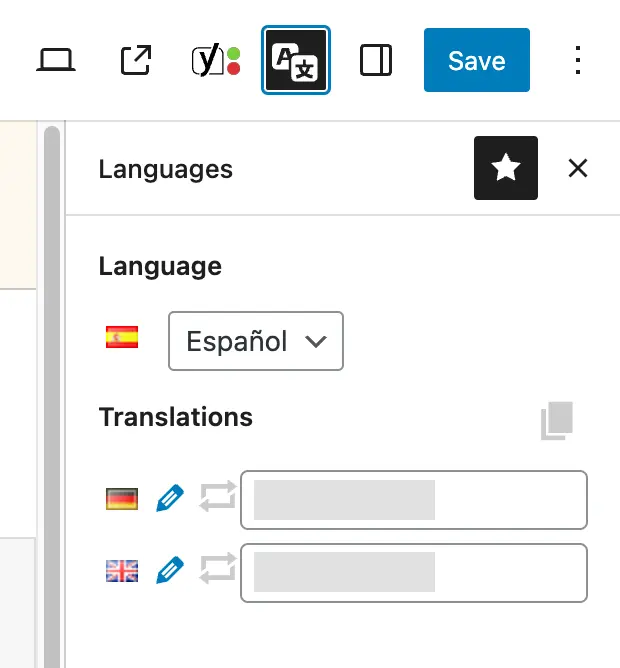 Click the languages icon to view the linked translations.