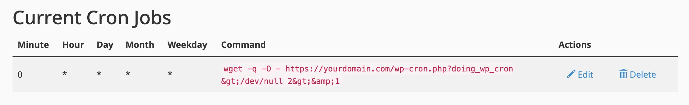 wget -q -O - https://yourdomain.com/wp-cron.php?doing_wp_cron >/dev/null 2>&1